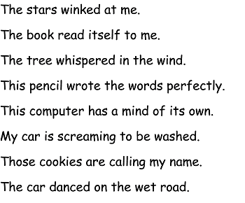 Walk the line between learning and imagination with our personification worksheets! Learn all about the practice of personification in writing, then try it your hand at it by bringing life . This lesson is intended as a mini lesson that . Personification worksheets for grade 4. Learn about personification, similes, metaphors, onomatopoeia, and hyperbole with the figures of speech poems found on our writing worksheets page.